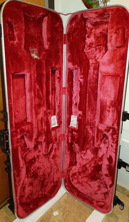 Vendo esta Maleta para bajo de la marca Ibanez, A ESTRENAR. No tiene ni una sola marca de uso. Me anticipé a la compra de un bajo Ibanez que al final no pude comprar así que me quedé con estuche y sin bajo, de modo que no ha sido usado nunca. El interior es de terciopelo rojo y trae las llaves en su interior. Está guardado y cerrado en la caja de modo que está libre de polvo.