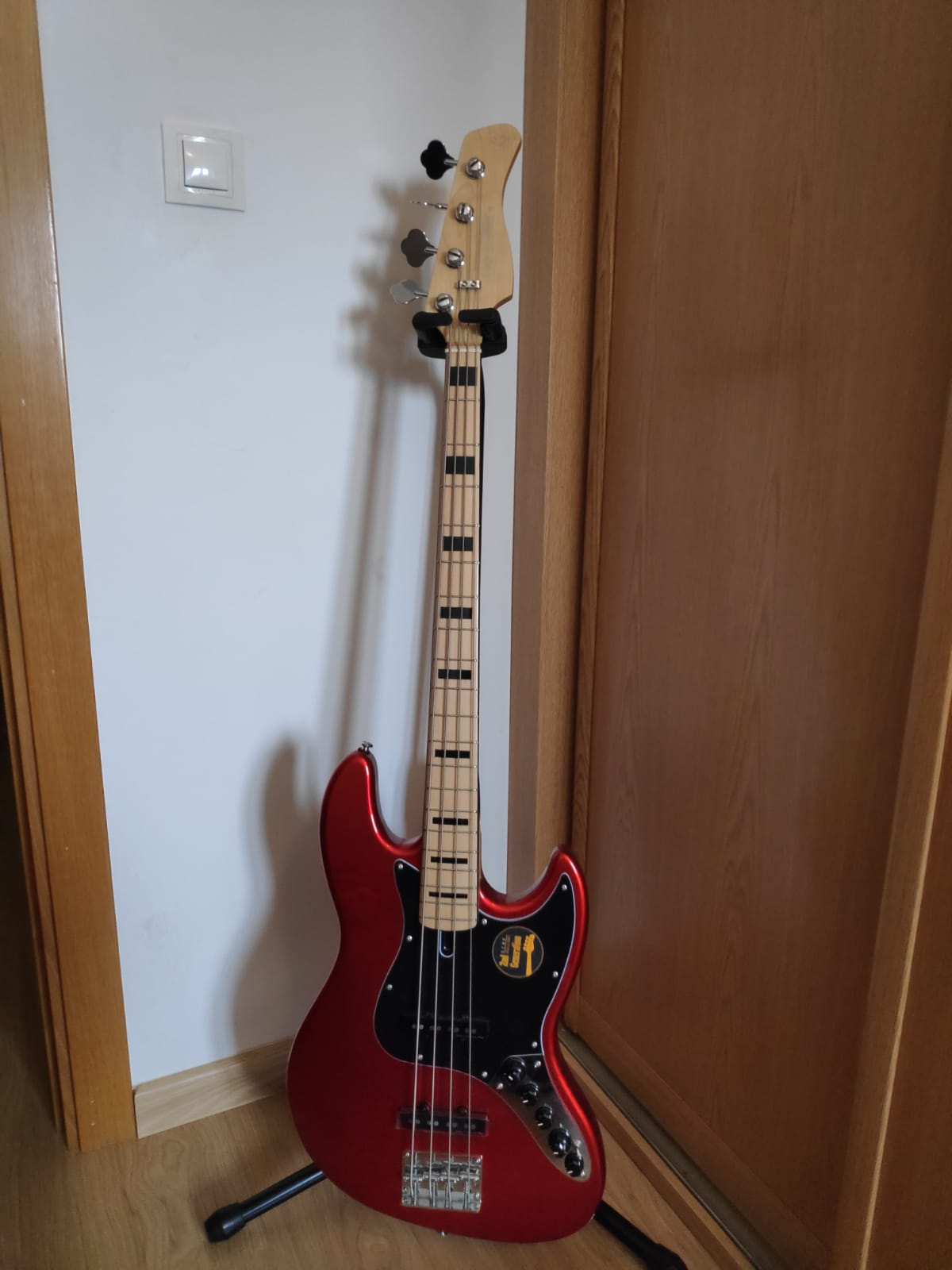 Lo dicho, vendo este bajo, modelo 4 cuerdas color bmr (rojo) con cuerpo de aliso y mastil de arce, está sin usar, no tengo tiempo ninguno y a mi pesar voy a empezar a vender. Este en concreto está sin uso, en su caja original y aún conserva el plástico de las pastillas. Precio 400€