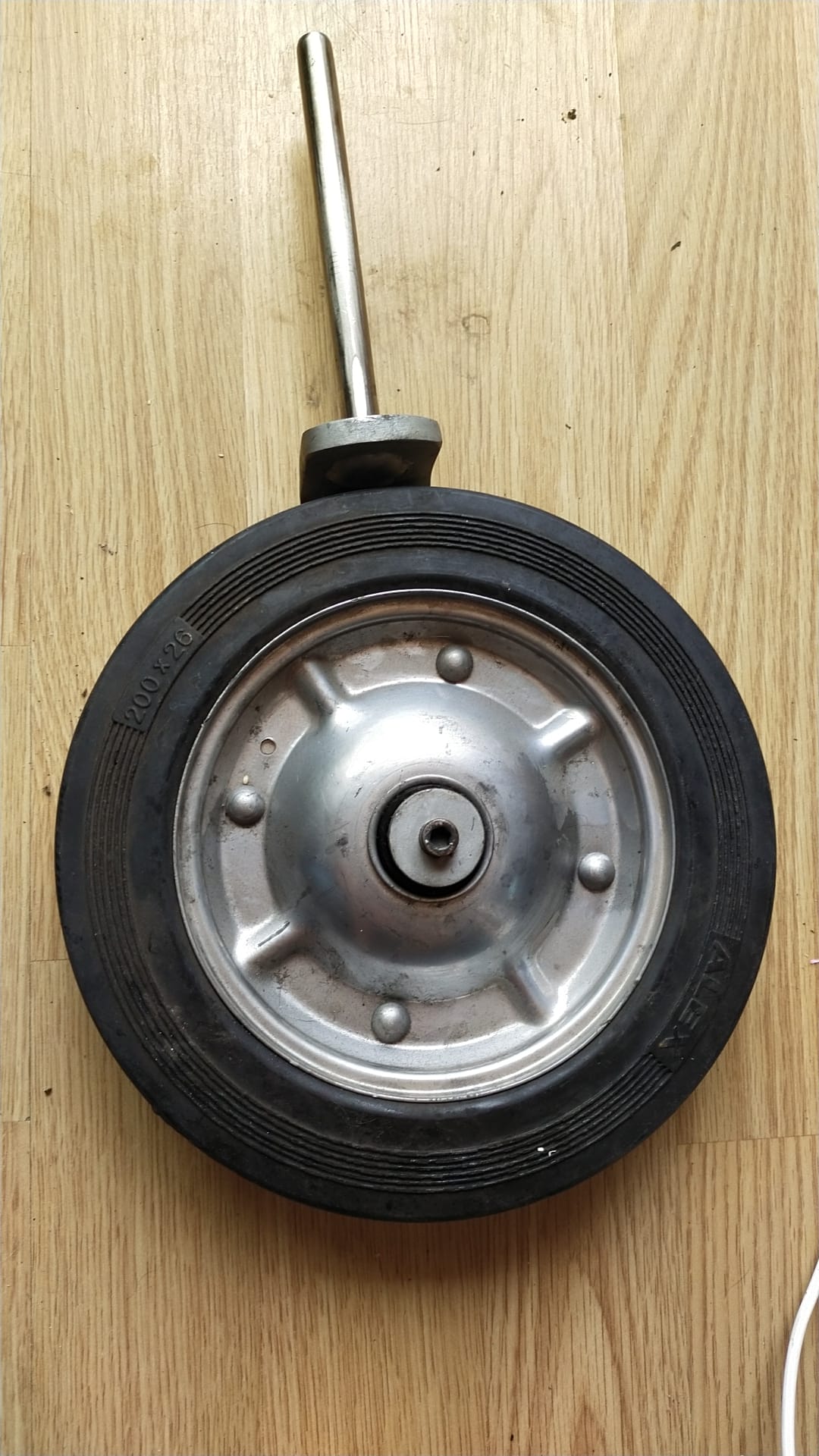 Rueda para transportar el contrabajo. Sustituye a la pica y lo llevas empujando. La espiga tiene 12mm.